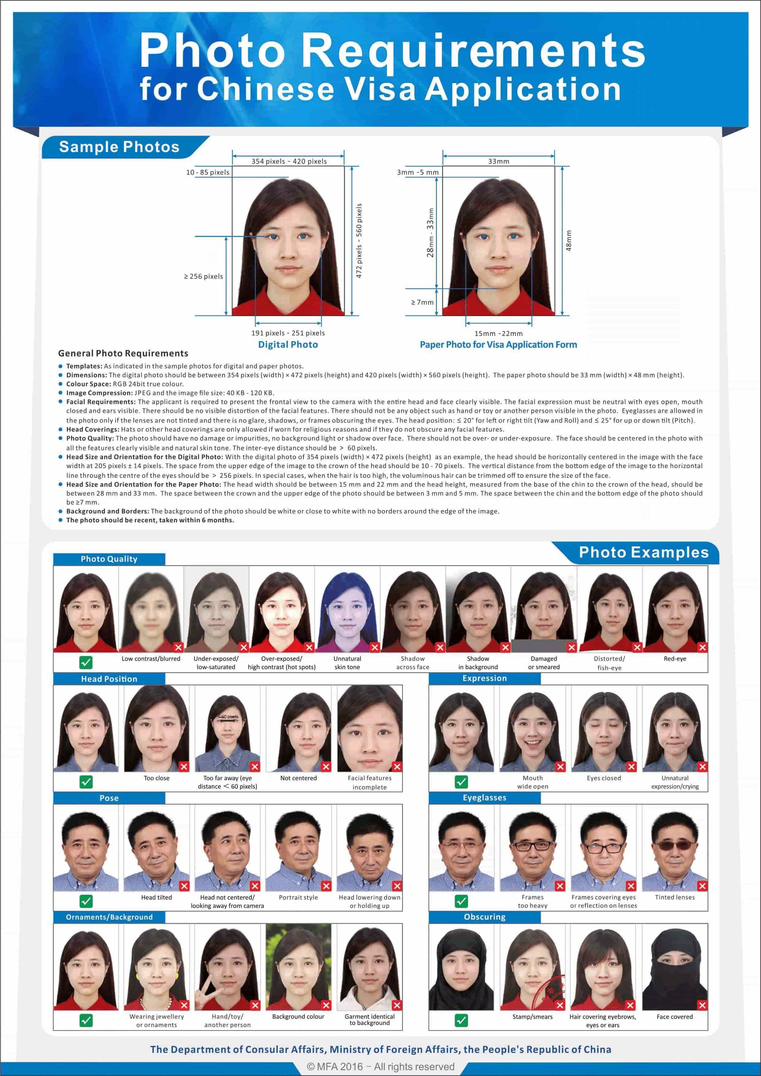 Specifikace na digitální a papírové fotografie pro žádost na vízum do Číny